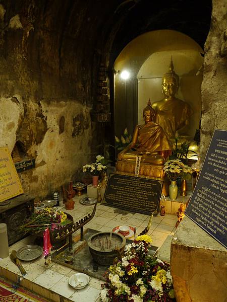 雖然京都與清邁都是古都,古都中座落的也大多是佛寺,但是寺廟的設計、座落的位置卻有極大的不同。京都的寺廟幾乎都是木造建築,大多數的寺廟都偏離市中心的位置,印象中除了東、西本願寺在市中心外,其他幾乎都座落在京都的外圍。而清邁的寺院主殿雖也是木造建築,但搭配著其他建材整合而成,不像京都的寺院這麼純粹,許多外部的裝飾讓人第一眼的印象就是眼花撩亂,加上寺院的位置很多都在兩公里見方的古城區內,總讓人覺得清邁的佛寺入世許多。在清邁大學附近的烏錳寺跳脫這樣帶給我的刻板印象,在Lonely Planet中一句“森林中的佛寺“,吸引著我騎著機車找路造訪,果然它就藏身在一大片樹林中。沒有誇張的雕樑畫棟,順著坡道往上走,古樸的舍利塔就在坡道底端走上台階的平台上,“遺世獨立“是當下浮現腦海的一句話。舍利塔建立的平台應該是墊高的,往旁邊一側望去就可以看到由磚石堆起的隧道,隧道中的一個個龕中放有佛像、鮮花與香爐,隧道頂的開口讓光線較為充足,就好像天主教堂兩側與穹頂的玻璃一般提供室內光線的來源。沒有什麼遊客的喧囂,中學生放學後三三兩兩在偌大的寺廟園區中晃,也有賣冰淇淋的小販騎著機車在此販售,穿著白袍的修行眾拿著掃帚打掃寺院環境,赫然還看見有白皮膚藍眼睛的外國人在此修行。這是離開烏錳寺前的最後一個印象。