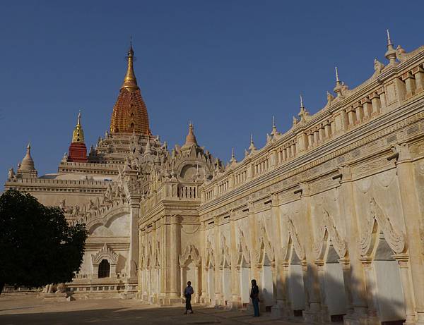 “救人一命勝造七級浮屠”,這句琅琅上口的俗話中,浮屠即是我們白話的佛塔。不管參觀什麼地方的古文明,幾乎都可以發現的現象是能夠經歷千百年考驗而保留下來的古(遺)跡,幾乎都是皇室或者宗教相關的。只是令人難以想像的是,在約兩百年的時間中,這小小幾十平方公里的區域竟然蓋了上萬座寺廟,即使到今天只遺留下千座左右,依舊是令人無法想像,寺廟與平民的住所想必是相當密集地分布在這個區域中,見證了蒲甘王朝的風光強盛。有些佛塔精雕細琢的壁畫保存完整,也有佛塔以極對稱的結構進行整體的建構,如Ananda Phaya就是這樣一座特殊的寺廟,雖然裡頭的設計與很多寺廟大同小異,四方都有一尊大佛像,但內部的大小柱與壁龕設計,從平面圖看起來有點像是西方天主教堂希臘十字平面,這實在是很有趣,可見對稱的架構幾乎可以算是美學的通則,但同樣都使用十字形做設計,那可真是巧合了。