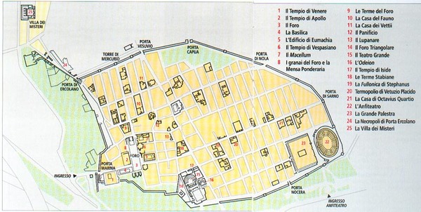 西元79年維蘇威火山噴發,龐貝就此封印於地底千年。在拿坡里的時候,只要走向港邊或者到稍微高些的丘陵地上,就可以看到維蘇威火山朦朧的綿亙在不遠的東南方,因為它毀滅了一整個城市,。不管拿坡里還是在龐貝,即使天氣是個大晴天,但空氣品質似乎不好,遠方的景物看起來總沒有辦法清澄通透。不管從拿坡里看著這座海拔不算太高的火山(約1300公尺高),還是從拿坡里搭公車前往龐貝的路上,在高速公路上曾經有一段很接近的看著它,或者到了龐貝在遺址的阿波羅神廟中,看著神廟背後的它,心底現起的印象都是:啊~這個兇手。只是在心中浮現這句話的同時,又不禁要敬畏大自然力量的強大,雖然我們總會說人定勝天來期勉自己任何困難只要堅定意志必可克服,但是誰又曉得哪天自然的反撲殺得人們措手不及?